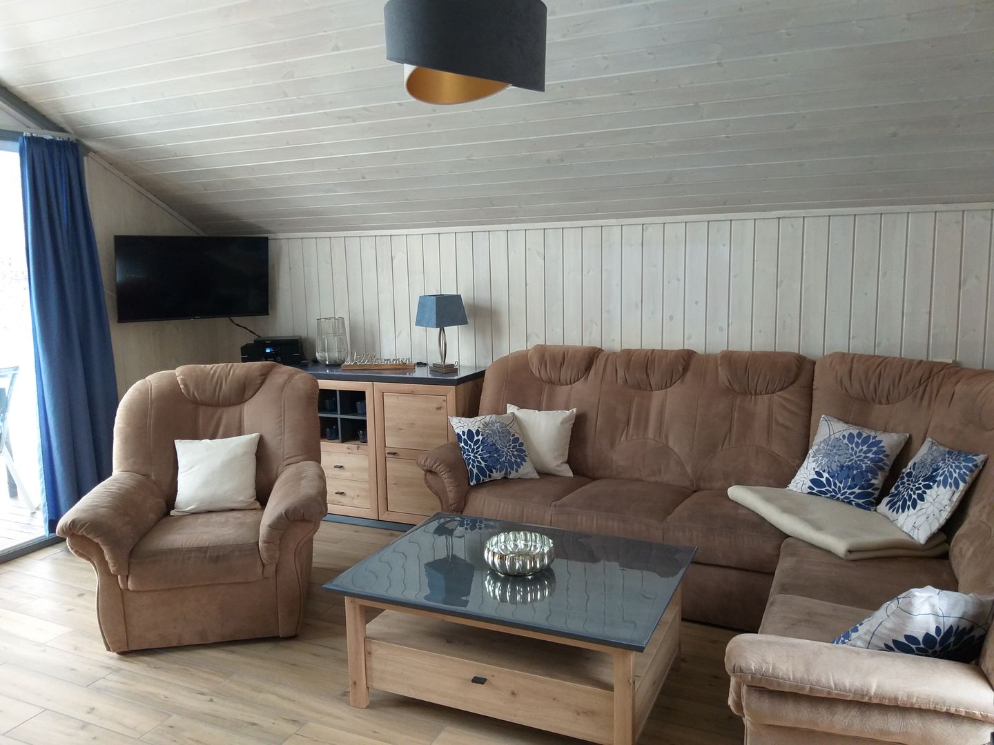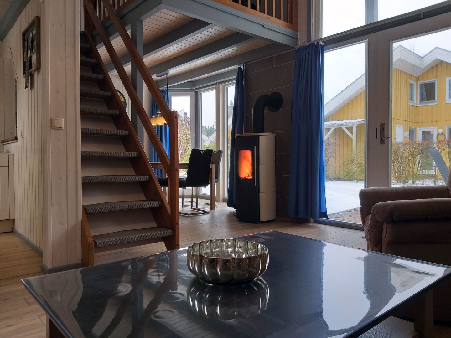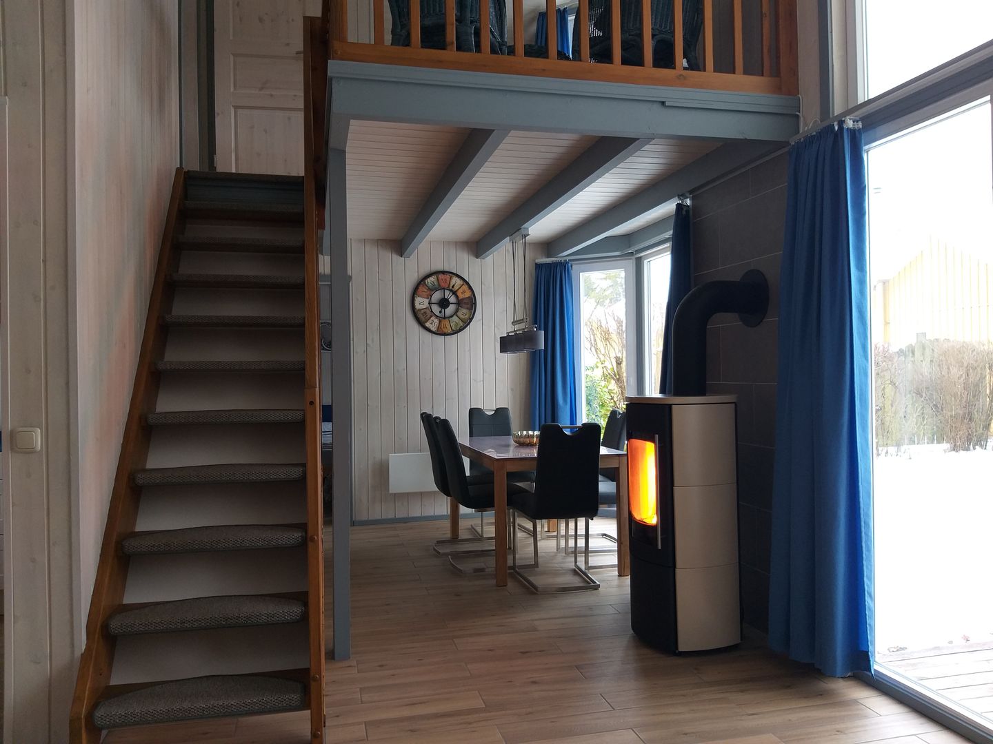 Das Ferienhaus im skandinavischen Stil bietet Platz für bis zu 6 Personen auf 2 Etagen mit 2 Schlafzimmern und offener Schlafgalerie, Wohn-/Essbereich, Einbauküche, Badezimmer mit Sauna, Terrasse, Abstellraum und Pkw-Stellplatz. Die Energiekosten werden nach Verbrauch abgerechnet.