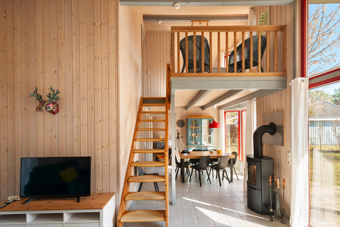 Das Ferienhaus im skandinavischen Stil bietet Platz für bis zu 7 Personen auf 2 Etagen mit 2 Schlafzimmern und offener Schlafgalerie, Wohn-/Essbereich, Einbauküche, Badezimmer mit Sauna, Gäste-WC, Terrasse, Abstellraum und Pkw-Stellplatz. Die Energiekosten werden nach Verbrauch abgerechnet.