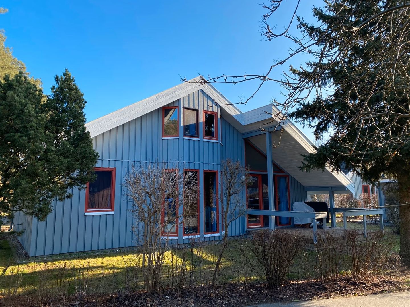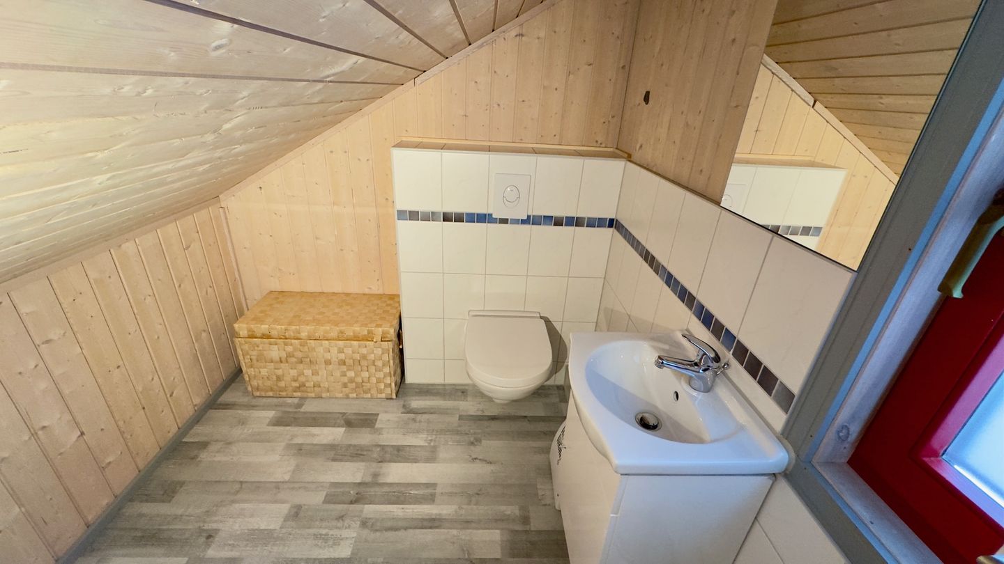 Das Ferienhaus im skandinavischen Stil bietet Platz für bis zu 6 Personen auf 2 Etagen mit 3 Schlafzimmern, Wohn-/Essbereich, Einbauküche, Badezimmer, Sauna, Terrasse, Abstellraum und Pkw-Stellplatz.