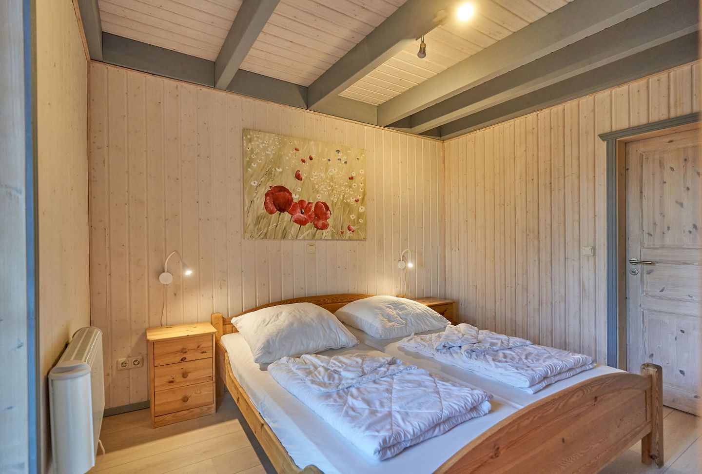 Das Haus ist im Erdgeschoss rollstuhlfreundlich und bietet dort ein Schlafzimmer mit Doppelbett. Im Obergeschoss finden Sie eine offene Galerie mit französischem Bett, ein Schlafzimmer mit Doppelbett und Einzelbett, und ein Schlafzimmer mit zwei Einzelbetten.