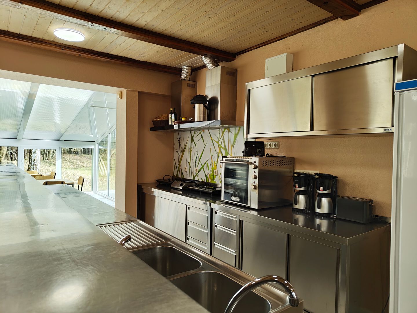 Der Fuchsbau ist für Familienfeiern o.a. Treffen sehr gut geeignet. Sehr schön und vor allem praktisch sind die Edelstahlmöbel in der Küche.