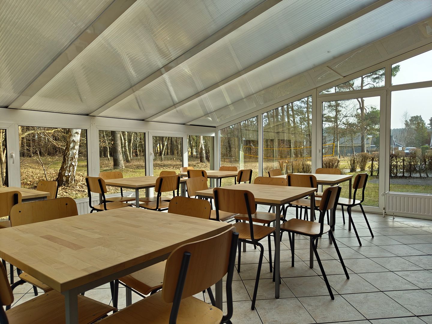Bis zu 30 Personen ist viel Platz vorhanden, sehr großzügig, wetterunabhängig durch den Wintergarten, ruhige Lage am Waldrand