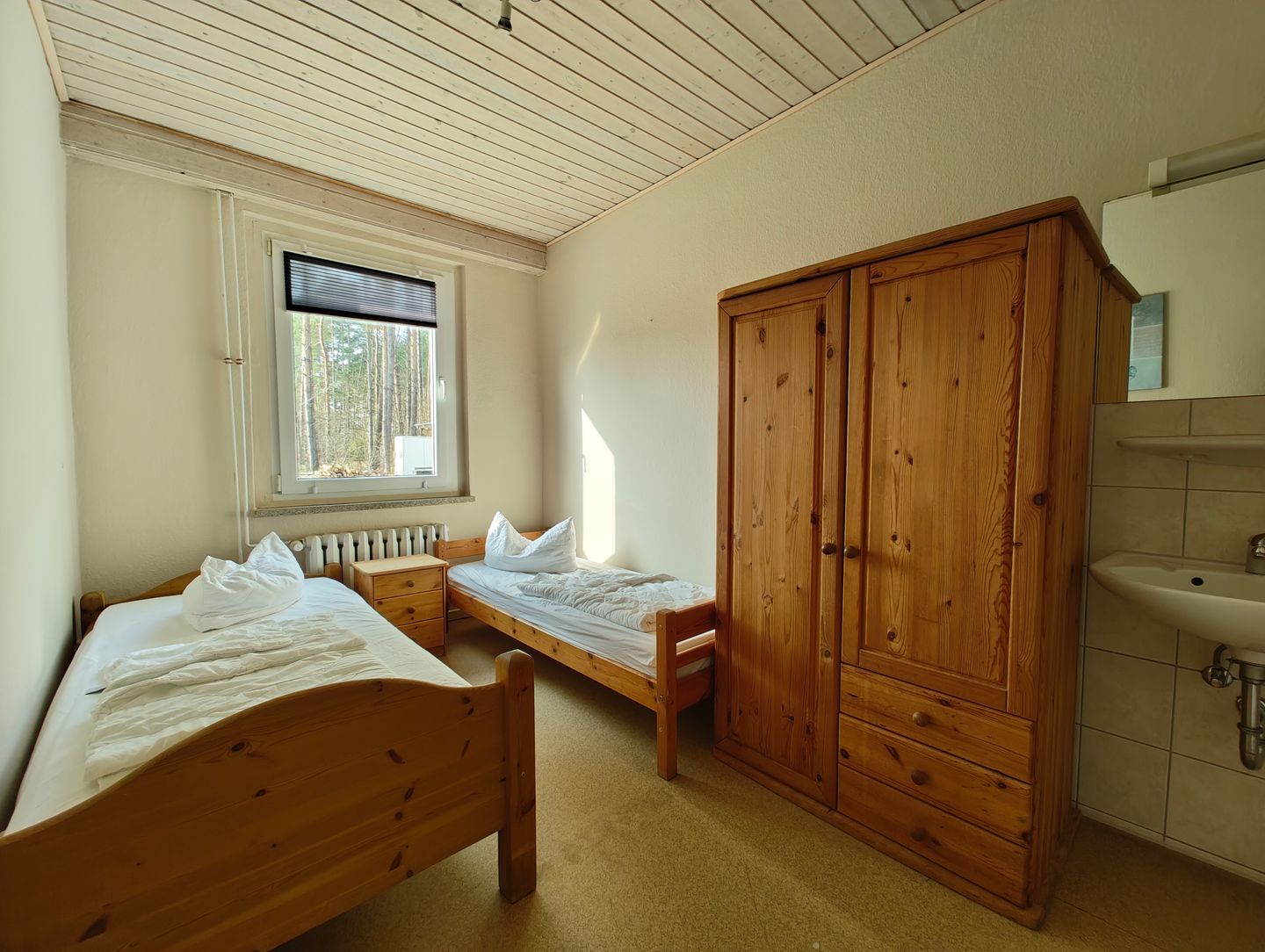 - 1 Zimmer mit zwei Einzelbetten / separatem Bad mit Dusche/WC